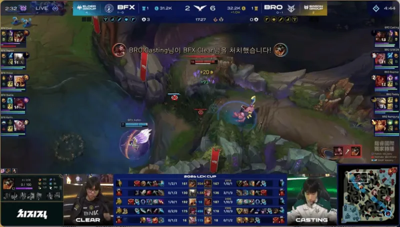 虎扑01月17日讯 【GAME1】BFX蓝色方,BRO红色方