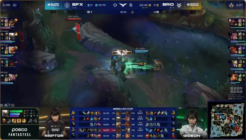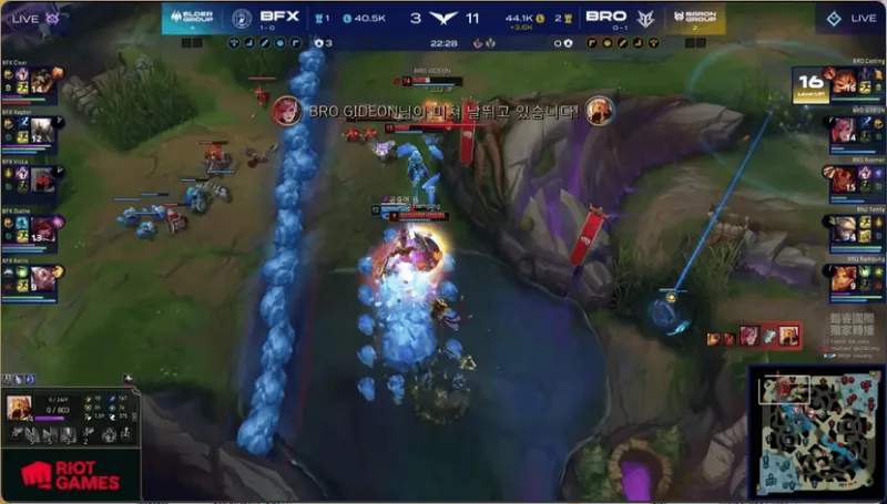 22分钟,BRO在上半区打出1换2,继续拉大差距